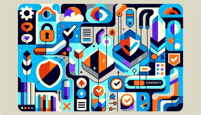 A visual representation of privacy and consent management, featuring icons such as locks for security, shields for protection, checkmarks for compliance with GDPR and CCPA, arrows indicating data flow, and cookies/pixels symbolizing tracking technologies.